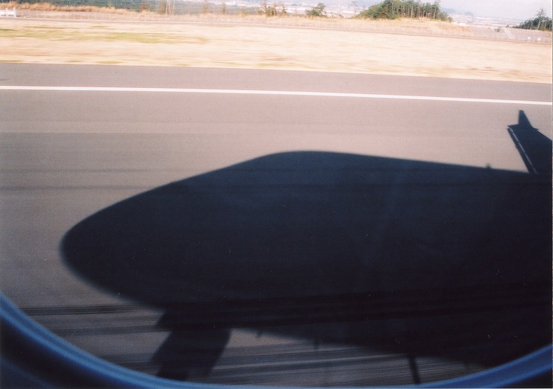 自分の乗った飛行機の影が近づいてきました。