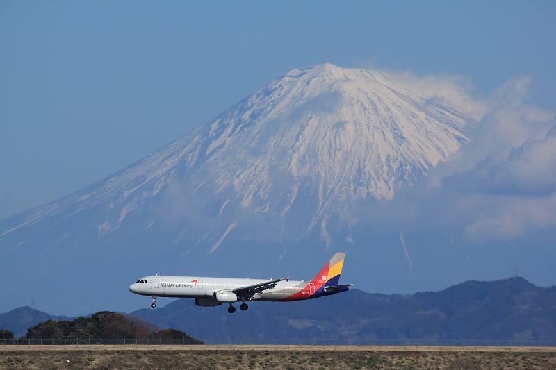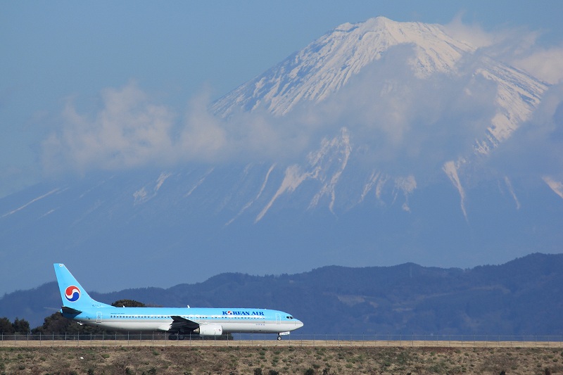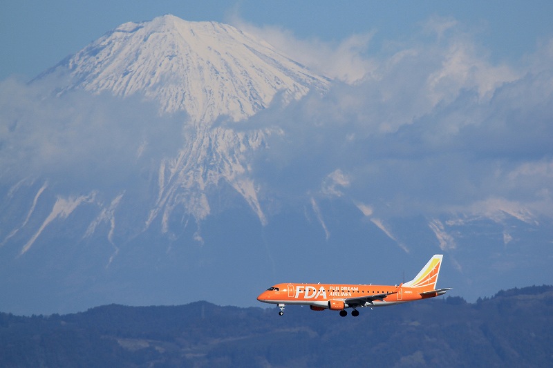自分の非力なレンズでは遠すぎてどうせダメだろうと思っていましたが、よく考えてみたら飛行場と撮影ポイントの距離差に比べて富士山と自分の距離の差は無視できるほど小さいので、いままで富士山を一杯に撮れていたレンズならちょっと離れたポイントであっても富士山はほぼ同じ大きさで映る訳で。