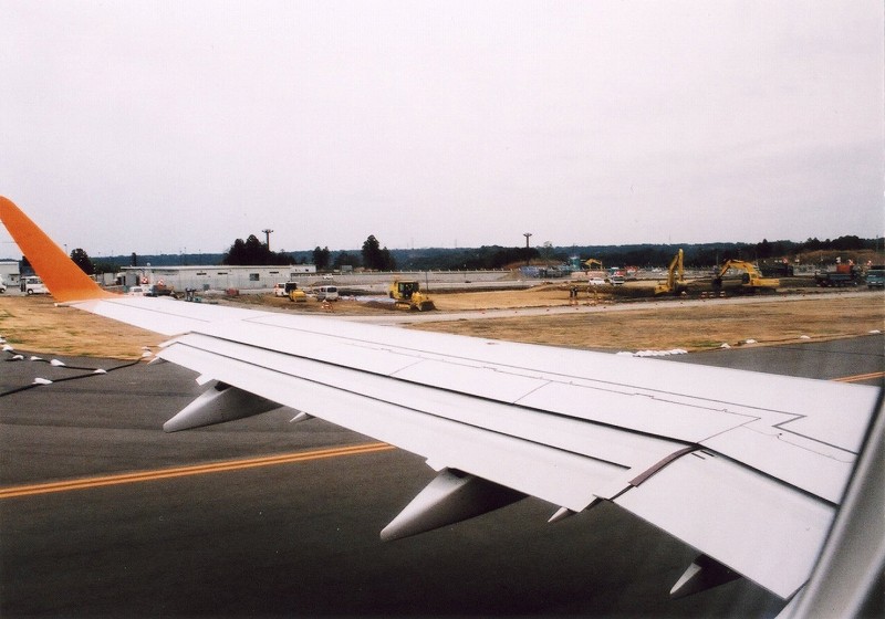 窓の外にはチャーター便にあてがわれていた緑が。赤と青は小松便で乗ったし、ピンクは先月乗りましたから 残すは緑だけとなりました。