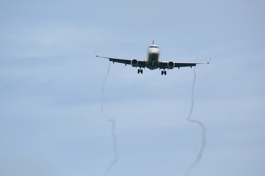 午後のJ-Airのエンブラちゃんは派手にヴェーパーを曳いて到着。ERJ170でこれだけ図太いヴェーパーは初めて見ました。