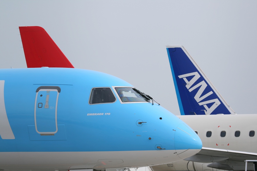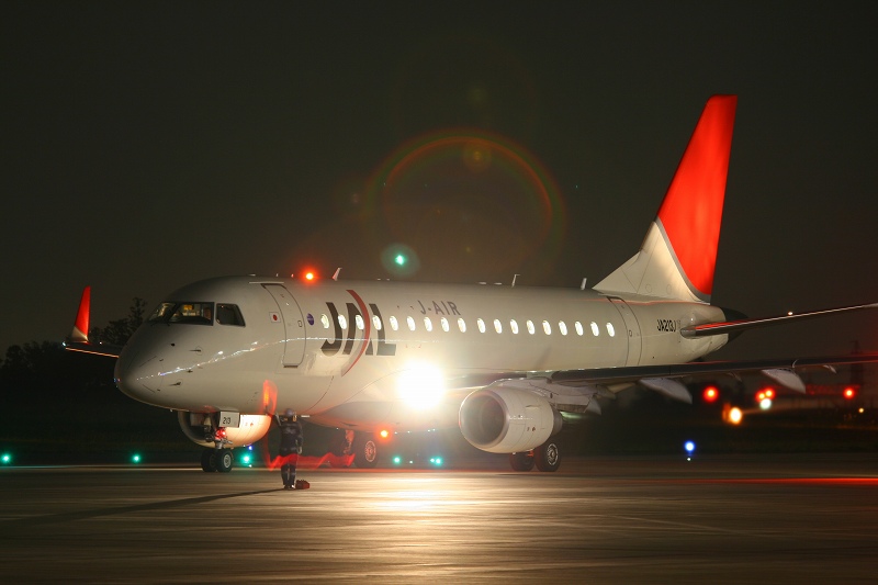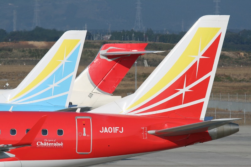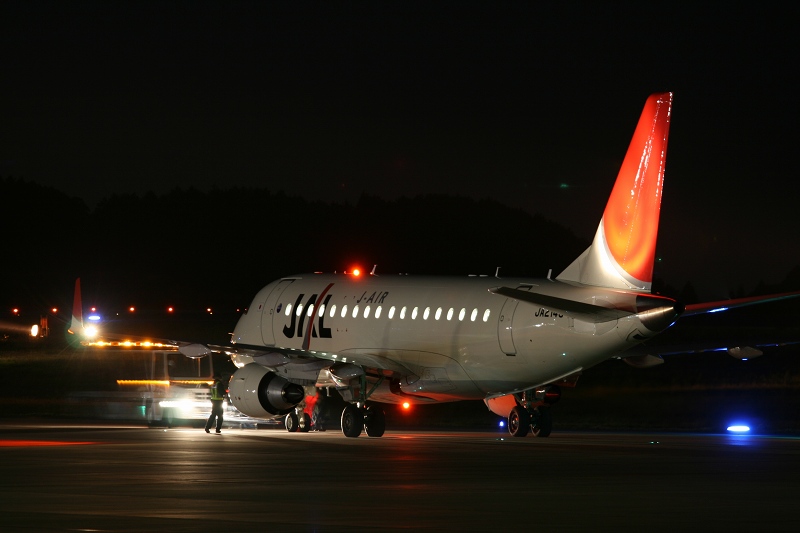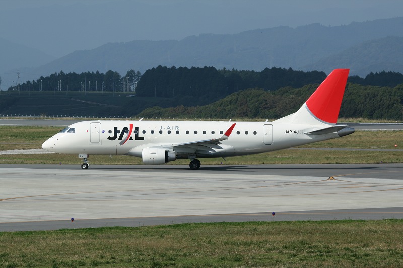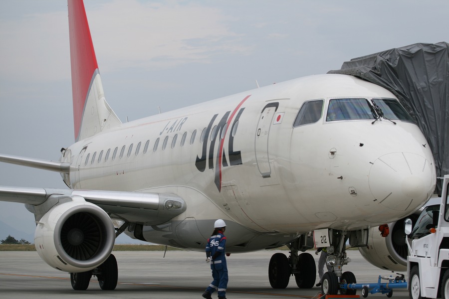 左:J-AirのERJ170のノーズ