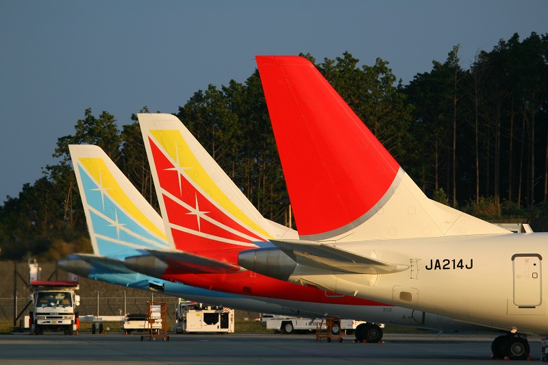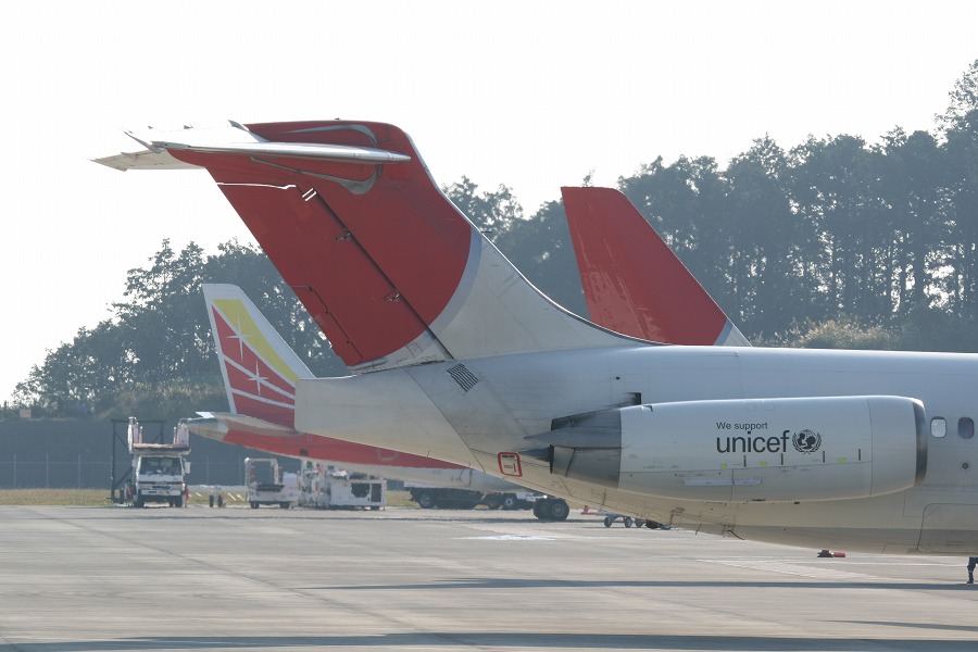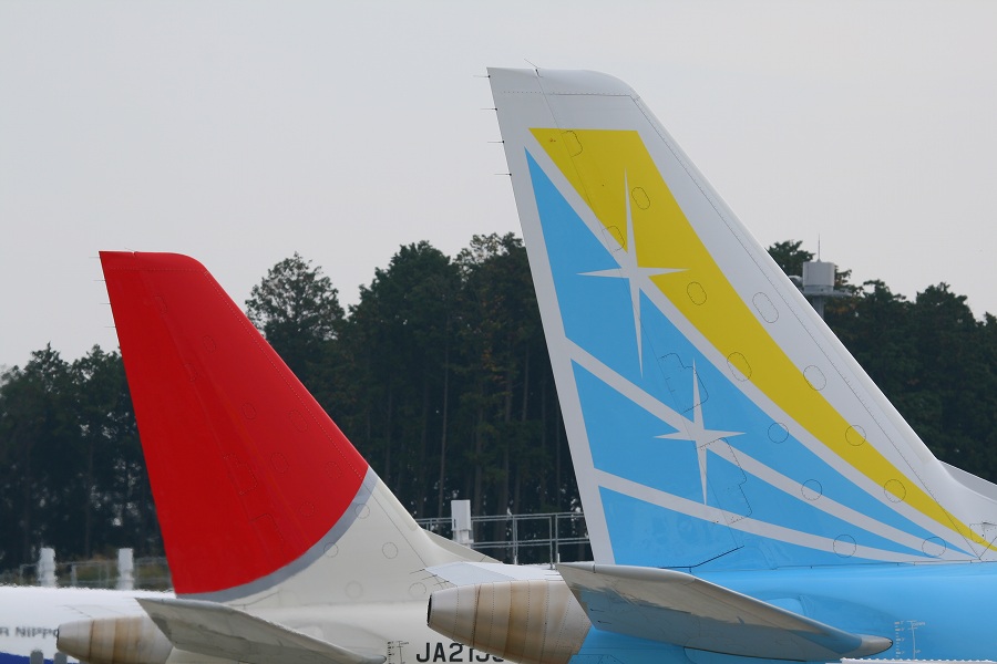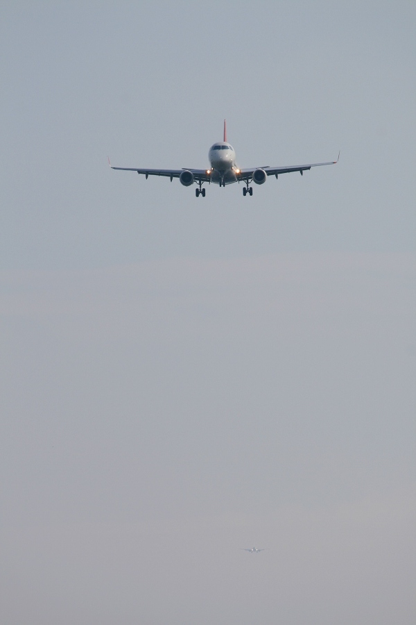 胴体が短いので、10月まで来ていたMD90と比べて尾翼を並べたショットが撮りやすいですw