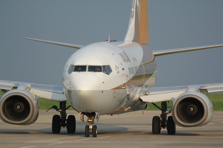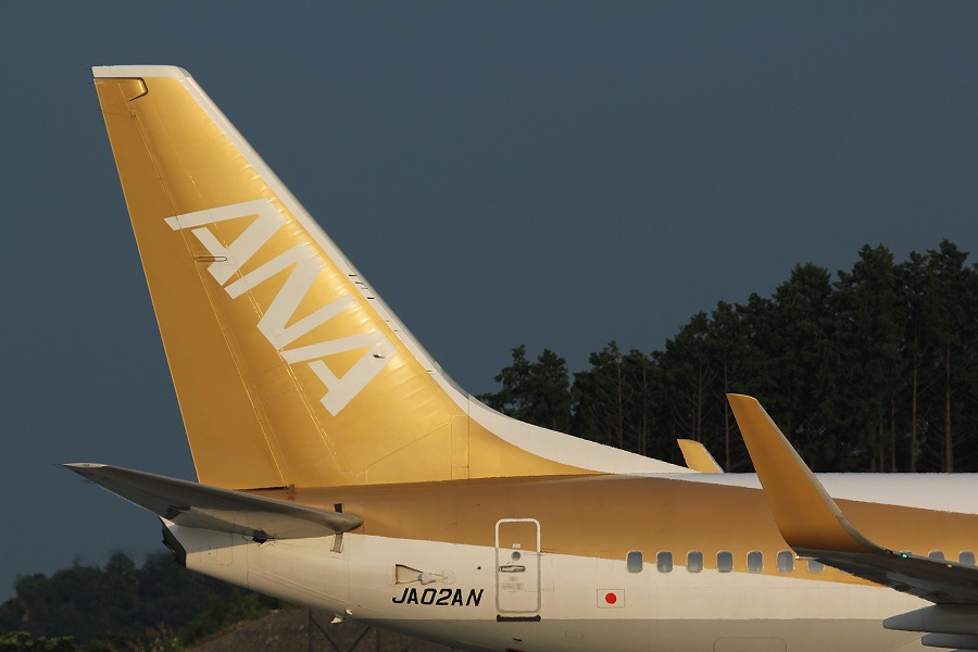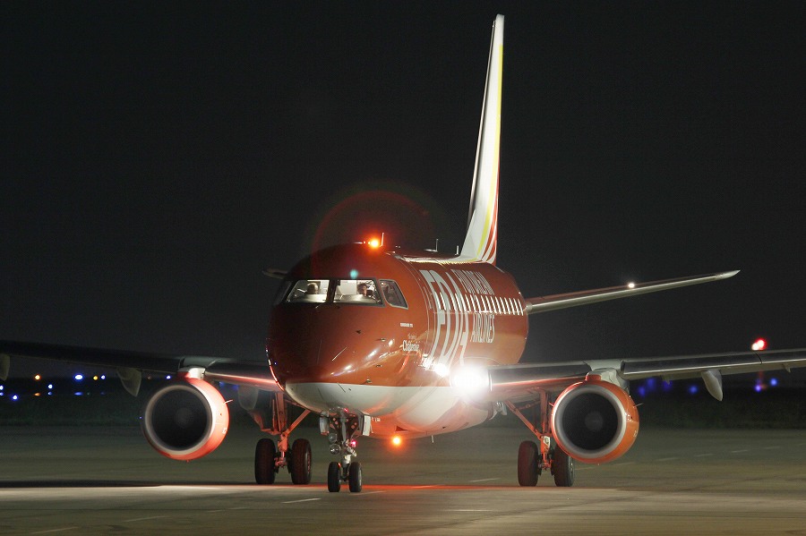 ロゴライトに照らされる尾翼の桜と胴体の露出をどうバランスとるか。