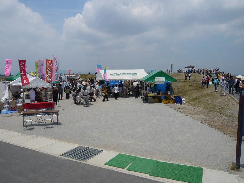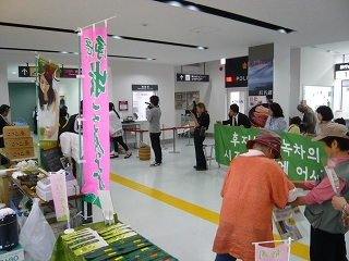 そんなこんなでお祭りムードの空港では西側広場に地場産品の出店がでています。
