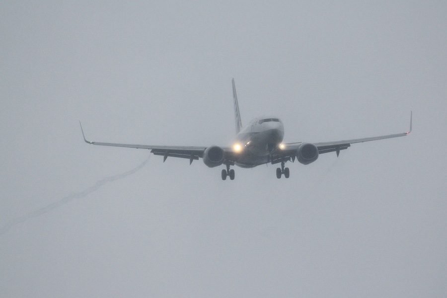 接地直前のフレアーでちょっと曳きました。