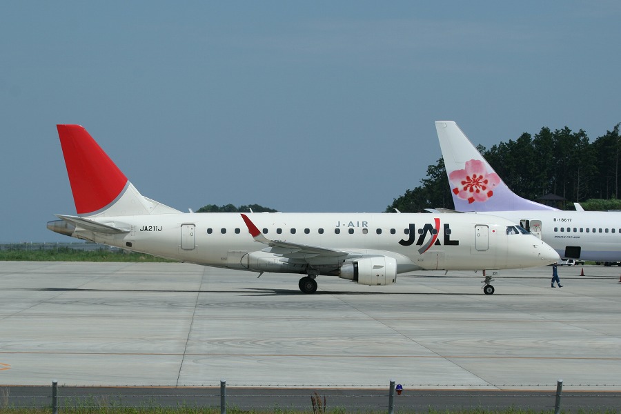開港当初は昼の福岡便のみに使用されていたJ-Airのエンブラエルは、10月のMD-90撤退に伴うダウンサイジングのため静岡空港における日航の全勢力を担うに至り、静岡空港は一気にエンブラ天国となりました。