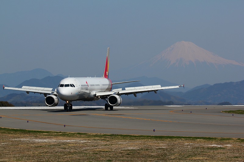 かすんだ富士山ながら、今季最後の富士山を貰おうかと西側展望台に居たら、アシアナさんサービスサービスでゆっくりと転がってきてくれました。