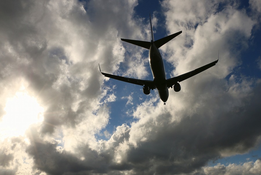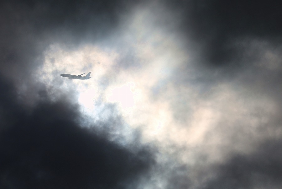 ちょうど薄い雲を通過したらしく、逆飛行機雲