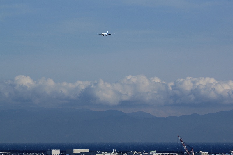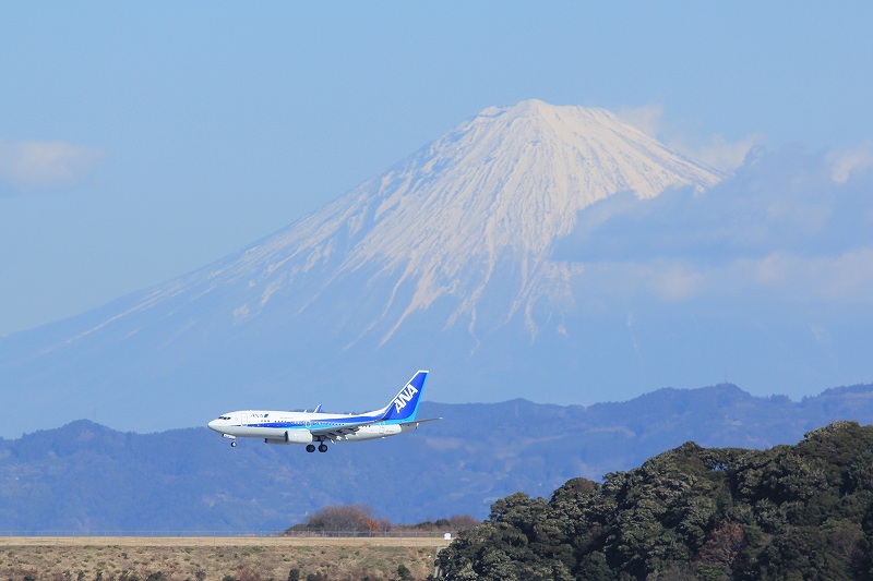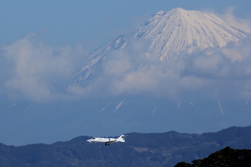 自分の非力なレンズでは遠すぎてどうせダメだろうと思っていましたが、よく考えてみたら飛行場と撮影ポイントの距離差に比べて富士山と自分の距離の差は無視できるほど小さいので、いままで富士山を一杯に撮れていたレンズならちょっと離れたポイントであっても富士山はほぼ同じ大きさで映る訳で。