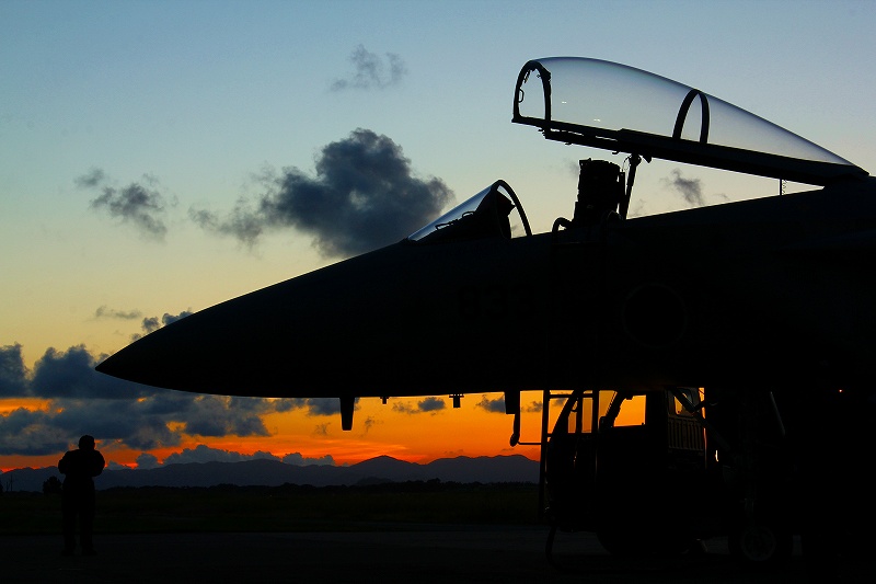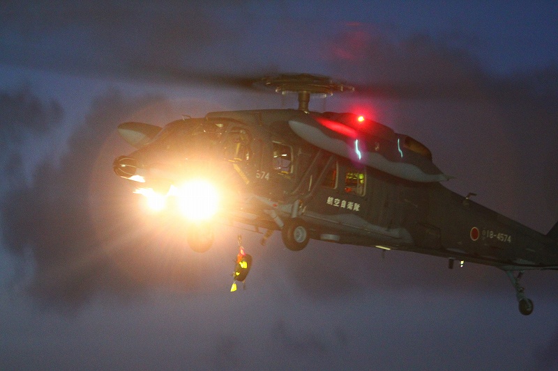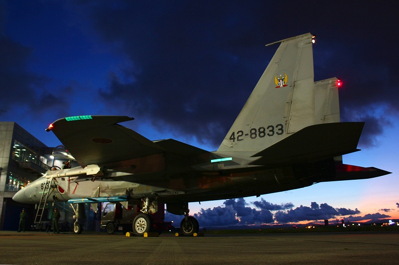 やみもなほ、ナブライトやうやう多く飛びちがひたる、またただ一つ二つなど、ほのかにアンチコうち光りていくもをかし。編隊灯の淡い黄緑いとをかし。