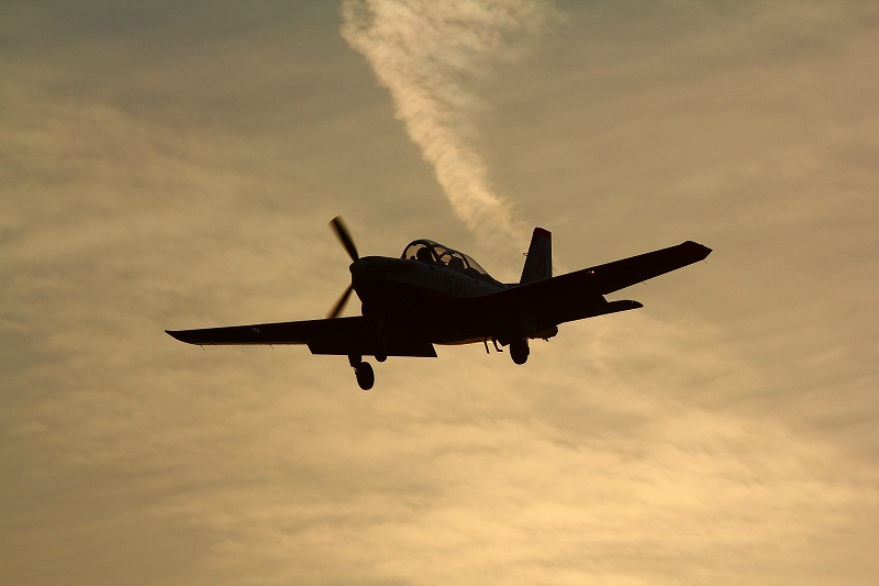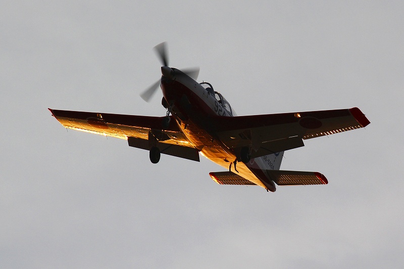 捻って空を向いた翼下面に斜光が反射します